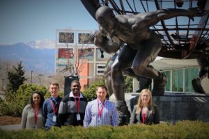 Eight Southeast Missouri State University sport management students and two faculty members recently attended the Team USA Symposium at the United States Olympic Training Center (USOC) in Colorado Springs, Colorado.The event identified and provided valuable experiences for the next generation of leaders in the Olympic and Paralympic movements. The group was able to interact with USOC management while staying onsite at the Olympic Training Center.Participating in the four-day symposium from Southeast were Darryeon Bishop of St. Louis, Missouri; Allison Conder of Freeburg, Illinois; Kyle Denk of Pacific, Missouri; Morgan Heard of O'Fallon, Missouri; Kyle Kasten of Edwardsville, Illinois;Kindra Lierz of Springfield, Missouri; Daniel Plunkett of Springfield, Illinois; Ben Tomasino of Marshall, Illinois; Dr. Chengming Hu, assistant professor of recreation and park administration and sport management; and Alicia Scott, instructor of sport management.Conder said the event introduced her to new resources and career options."I was able to expand my professional network," she said. "I also gained a lot of knowledge of an area of the sport industry that I had not previously considered."