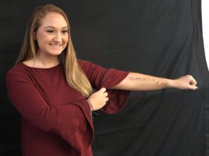 Southeast student Cassadi Christenson chose the words supportive and joyful to proclaim herself as someone that looks out for the good of others as part of the Skin Deep Project.[/caption]Words are powerful, and some words can cut deep. In the fourth annual Skin Deep Project, Southeast Missouri State University students are learning how to take control of the words that define them by proclaiming words of empowerment and redefine who they really are.The project is part of Instructor Jeanne Harris Interpersonal Communications class. The students write words that have been used by others to define them on their skin, clothing or a piece of paper. They are photographed erasing those words and displaying words that they choose to define themselves.The project is both cathartic for students who participate and motivational for those who observe, Harris said.This is an opportunity for them to clarify, redefine and challenge what others have said about them or what they think of themselves, she said. Its also an opportunity for them to connect with one another, sharing their experiences, and even counsel and inspire one another.[caption id="attachment_31073" align="alignright" width="300"]