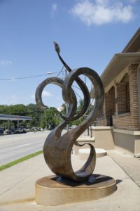 A sculpture titled Caduceus by Southeast Missouri State University sculpture student Heather Meadows was dedicated today in downtown Cape Girardeau.