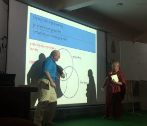 Dr. Hamner Hill (left) teaches logic and philosophy of science with Geshe Dadul Namgyal, Emory-Tibet Science Initiative scholar and translator,at the Drepung Loseling Buddhist Monastery.