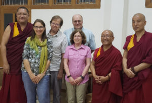 From left to right are Geshe Kyerap Penpa,Marianne McHann, Dr. David Henderson, Dr. Hamner Hill, Dr. Peggy Hill, Geshe Dadul Namgyal and Geshe Yoten Gyatso.