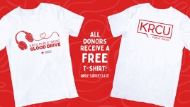 Donors with all blood types are needed, especially those with types O negative, A negative and B negative. To register, visit krcu.org/blooddrive. All donors will receive a free t-shirt, while supplies last. Face coverings are REQUIRED, regardless of vaccination status.